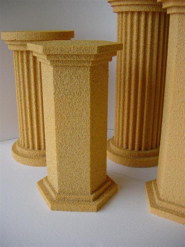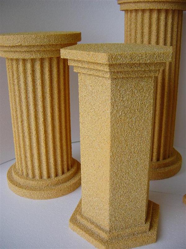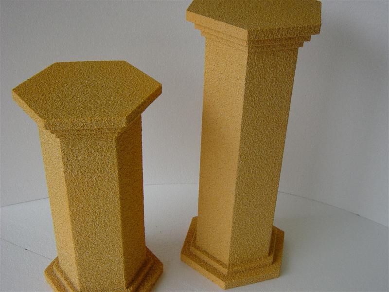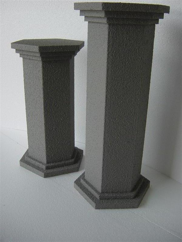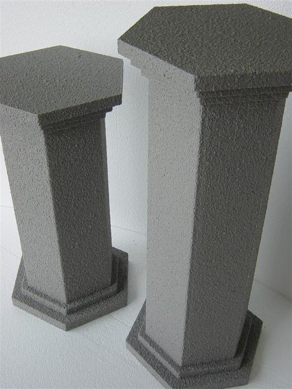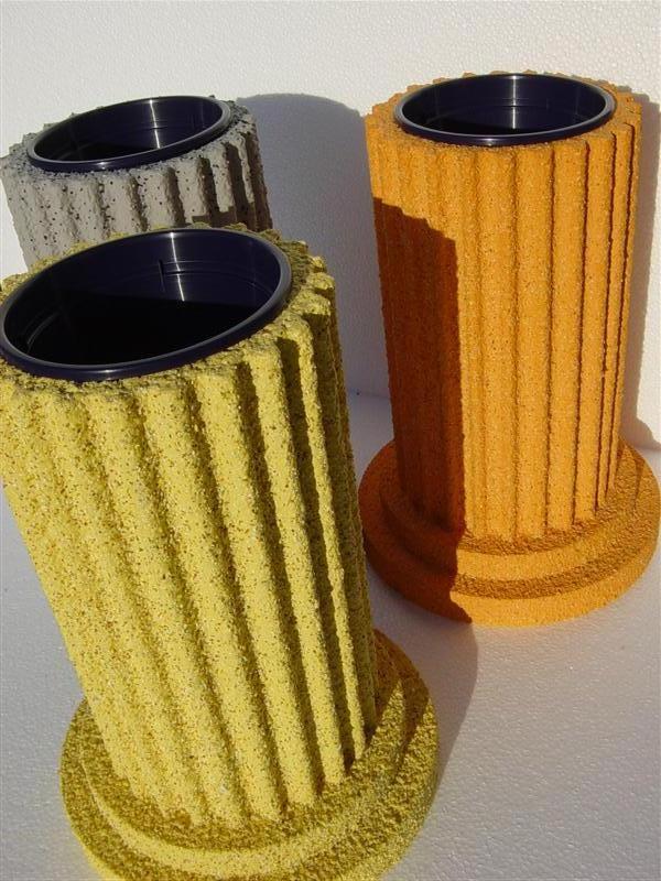 Dekosäulen in verschiedenen Formen und Farben mit einer hochwertigen Gesteinoberfläche (auch in XXL möglich) Leicht und Stabil - für unterschiedliche Topfgrößen, verschiedene Durchmesser und Höhen, erhältlich in: glatt, geriffelt, 6-Eckig, 12-Eckig Schwerentflammbar und für Außen geeignet