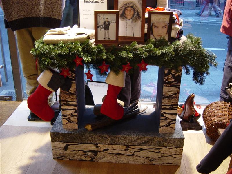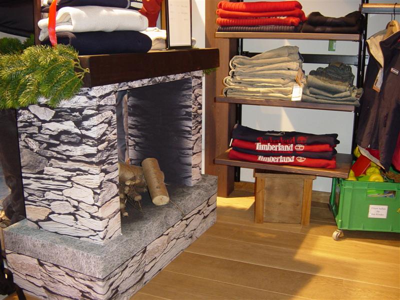 Styro-Kamin als Schaufensterdekoration in über 200 Timberland-Filialien Europaweit